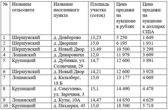 101 тысяча долларов за надел. Топ-10 самых дорогих участков в Минском районе, проданных на аукционах в прошлом году