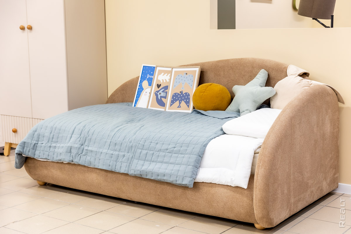 Что насчет цен? Приведем несколько примеров: прямой диван Лилт 270х126х86 см с механизмом раскладывания «еврокнижка» — 3191 BYN, угловой диван Эби-2 354х167х87 см с механизмом «трехсекционная еврокнижка» — 3281 BYN, корпусная кровать с полками в изголовье Шелхорн 180 — 1044 BYN, детская кровать Кейси 90 — 1109 BYN. Действует рассрочка без повышения стоимости.