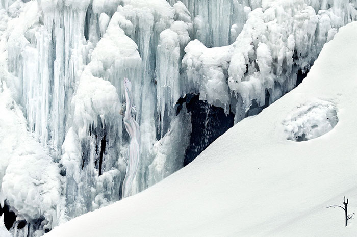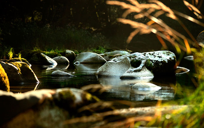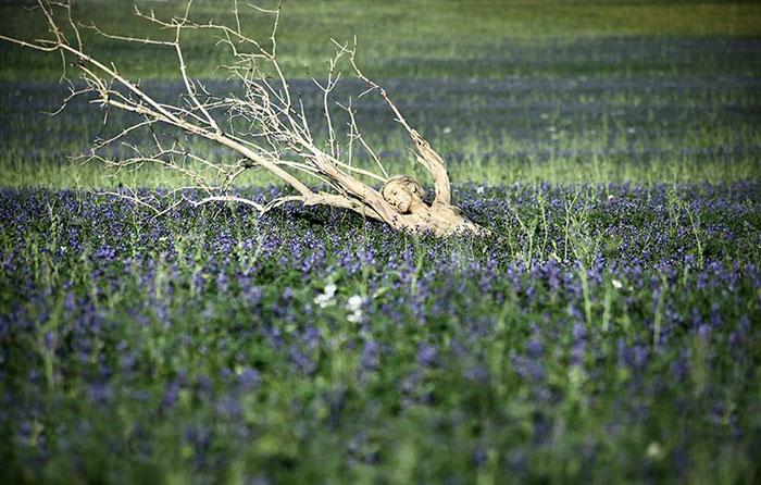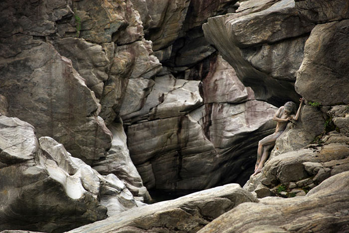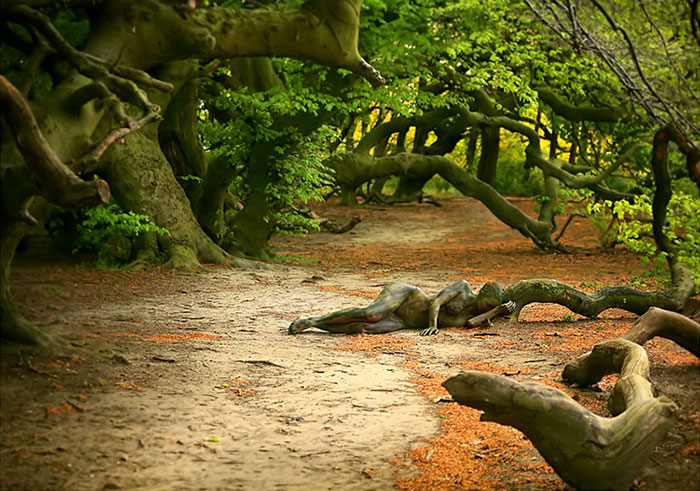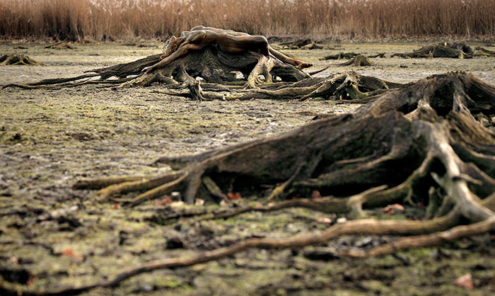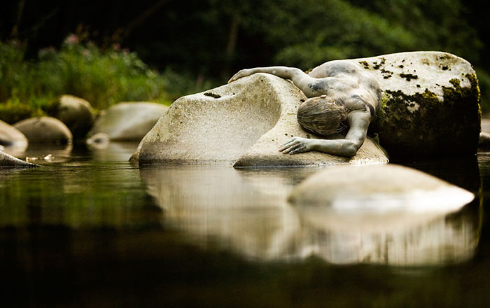 В процессе создания снимков фотошоп не использовался. Тела моделей были расписаны так, чтобы зрителю было как можно сложнее разобраться, где заканчивается собственно природный ландшафт и начинается человек.