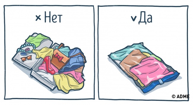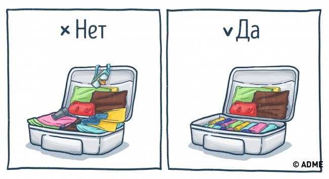 Фактрум публикует полезнейшую инструкцию из блога Adme для своего читателя. Эти наглядные примеры помогут действительно «впихнуть невпихуемое» даже в чемодан небольших размеров.