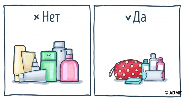 Как бы ни хотелось взять из дома все любимые тюбики, придется пожертвовать ими ради других, более необходимых вещей. Для поездки покупаем мини-версии любимых средств.