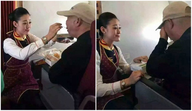 71-летнему мужчине, который незадолго до поездки перенес инсульт, выделили удобное кресло в первом ряду. Казалось, что поездка должна пройти для него легко. Но после раздачи обедов стюардесса заметила, что у пассажира не получается держать ложку и он не может поесть. Тогда она сама накормила его и вытерла слезы, которые выступили на его глазах, настолько он был тронут заботой чужого человека.