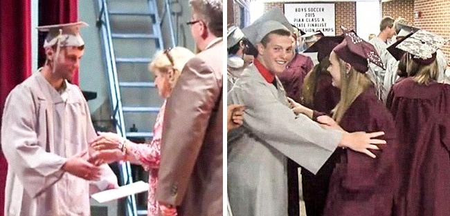Одни из первых слов, которые Скотт Данн сказал маме, выйдя из комы, были: «Какое сейчас число? Неужели я пропустил выпускной?». Молодой человек с нетерпением ждал важного вечера, но из-за ужасной автокатастрофы оказался в больнице. Как только мальчик пошел на поправку, директор школы связался с родителями: «Мы приготовили кое-что особенное для вашего сына». В назначенный день в школе снова зазвучали поздравительные речи и звуки праздника, но на этот раз вручали только один диплом. Весь класс при параде повторил церемонию для своего одноклассника. «У меня нет слов, это невероятно осознавать, скольким людям, оказывается, есть до меня дело».