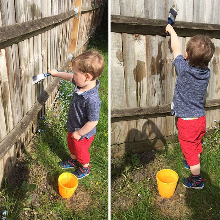 Вам гарантировано несколько спокойных минут, если вы позволите своему ребёнку «покрасить» забор водой