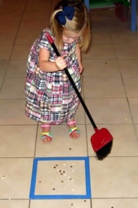 При помощи выделенного места на полу можно превратить процесс уборки в увлекательную игру