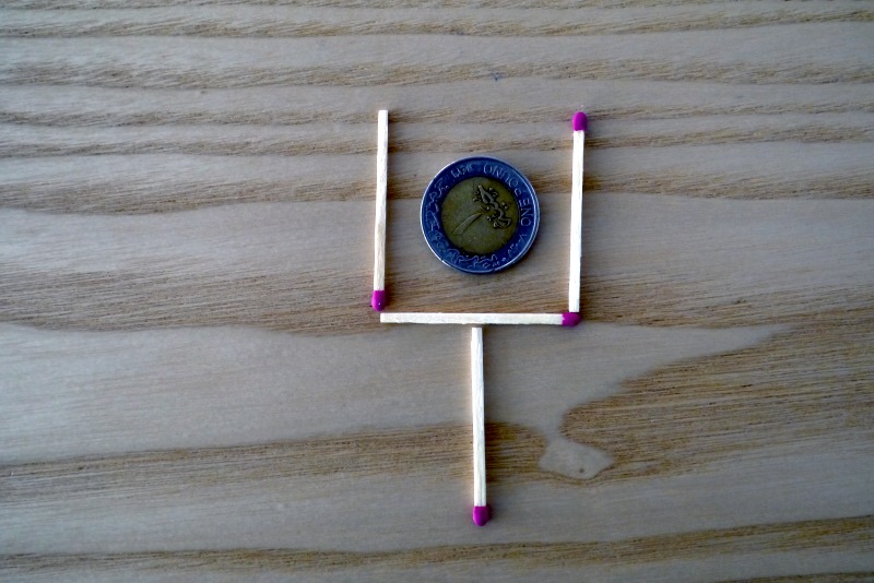 Переставьте 2 спички так, чтобы монетка оказалась вне буквы «Я».
