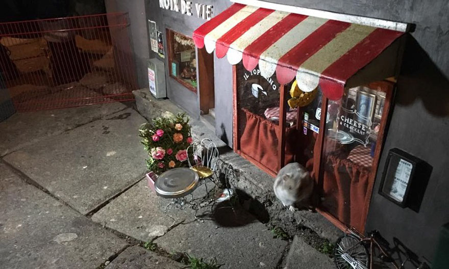 В шведском городе Мальме человек, который называет себя «Anonymouse» создал довольно необычный арт-объект: магазин специально для мышек. Внутри слухового окошка подвала он разместил витрину с орехами и сыром, а также несколько столиков. Стены около этого магазина и кафе украшены плакатами, где главными героями являются мыши.