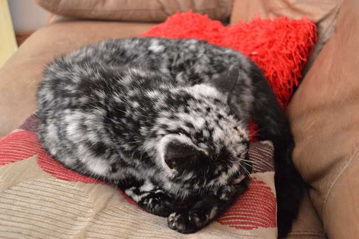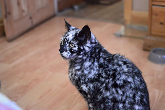 Тогда Дэвид отвез Скрэппи к ветеринару, который выяснил, что кот получил редкую болезнь среди животных — витилиго. Эта болезнь выражается в том, что некоторые участки кожи (или шерсти, как в данном случае) теряют меланин и становятся белыми. Лечение от витилиго пока что не найдено.