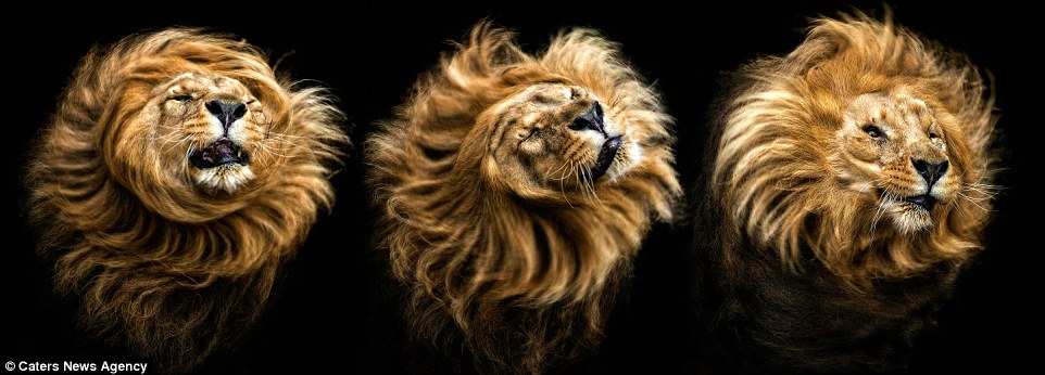 Педро удалось объединить три кадра отряхивающегося льва в один, получив поразительный снимок