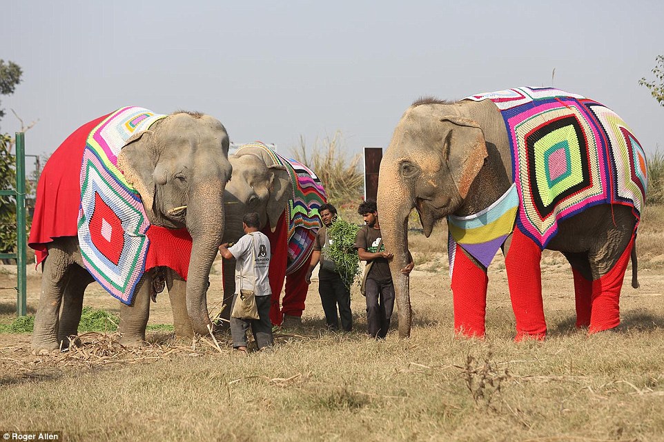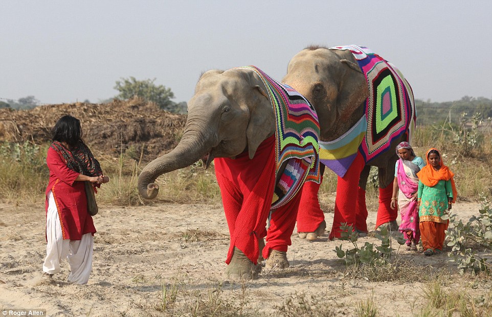 К счастью, добрые индийские женщины считают своим долгом заботиться о бедняжках. Индианки вяжут спицами и крючком тёплые попоны, пижамы и даже чулки для слонов. Самки Лахми, Фулкали и Сюзи — настоящие модницы!
