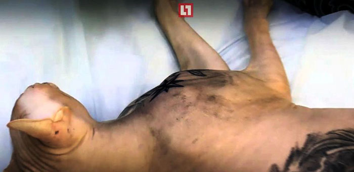 Российский фанат татуировок Александр решил сделать своему сфинксу серию татуировок